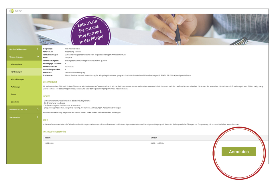 Hier finden Sie das umfangreiche Fort- und Weiterbildungsprogramm für beruflich Pflegende inklusive Anmeldung.